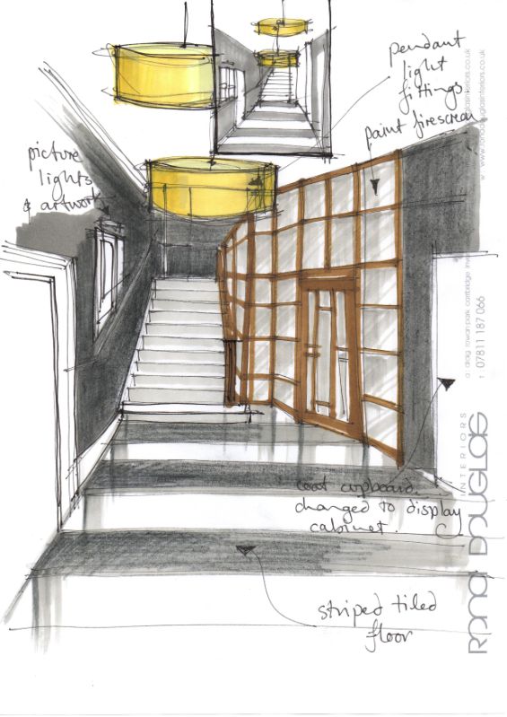 Please click on the images below for an insight into how I progress the design process from initial site visits to sketch ideas to presentation boards and finally the completed interior.