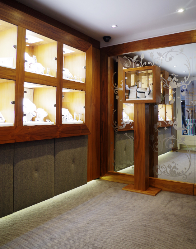 Colin Campbell and Company is a stunning boutique style jewellers located in the heart of the city of Inverness. This established family run business commissioned Rona Douglas Interiors several years ago to come up with an interior scheme to transform and soften the shop interior, while conveying the uniqueness and quality of their jewellery.