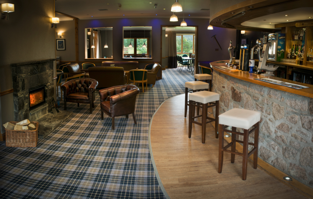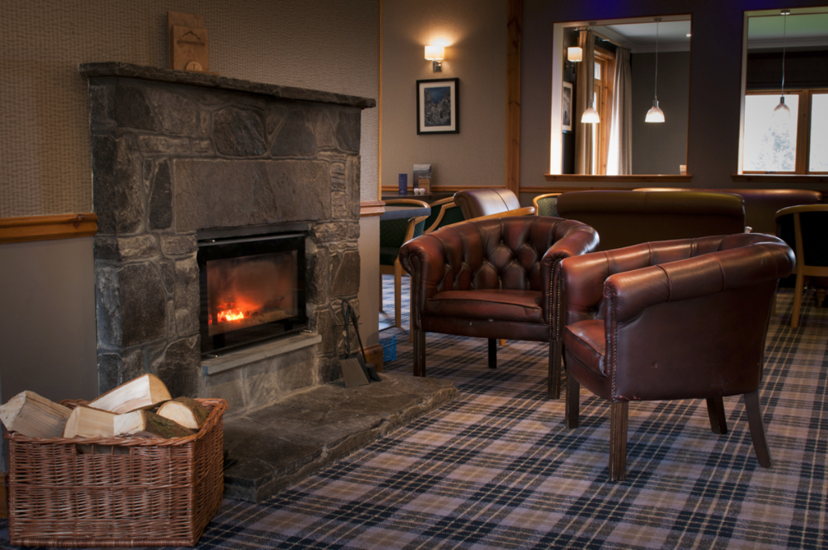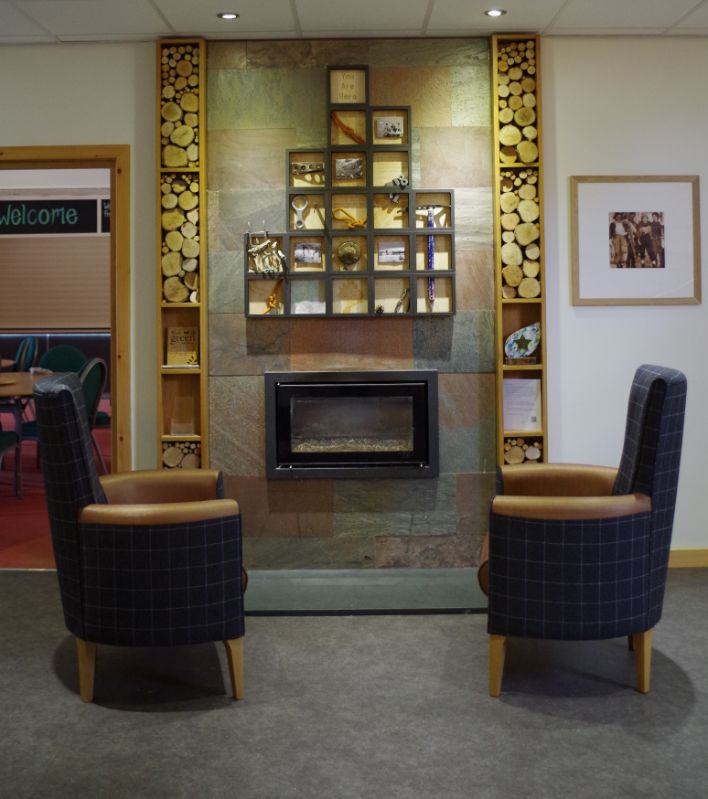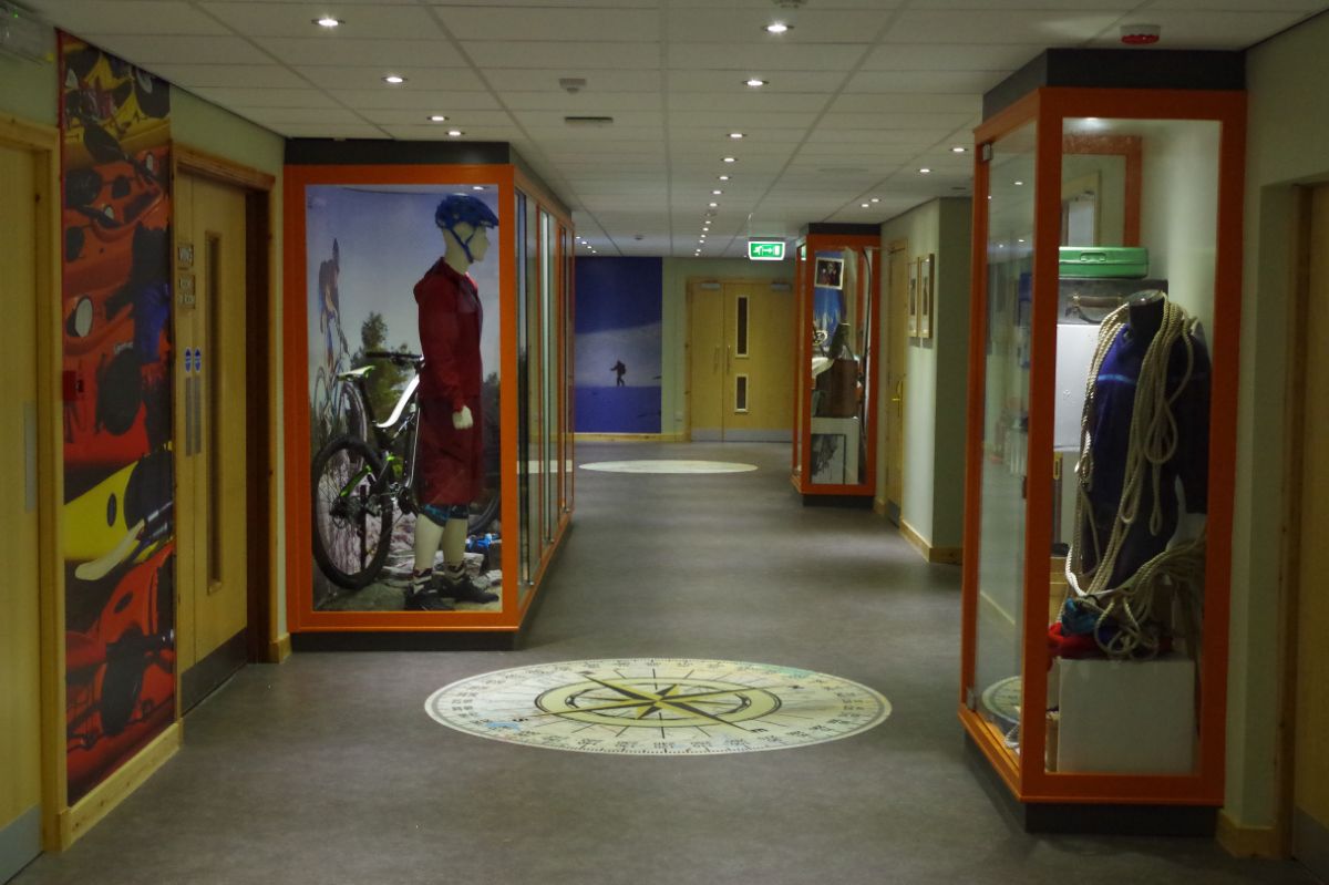 Inspiring photographic images in different formats were used throughout the public areas, depicting current activities as well as archive images showing the Lodge of the past. Maps set into the floor and interactive screens have been used to aid instructors and clients, while a new stove and surround have been installed in the now brightly lit reception area to create a warm welcome to all who enter the Lodge.