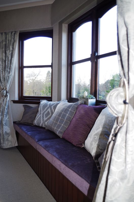 On the request of the clients Rona Douglas Interiors have created a luxuriously restful scheme using a muted palette of greys and taupes with accents of mauves and aubergine. The finished scheme is a light filled, sumptuous space in which to relax and entertain.